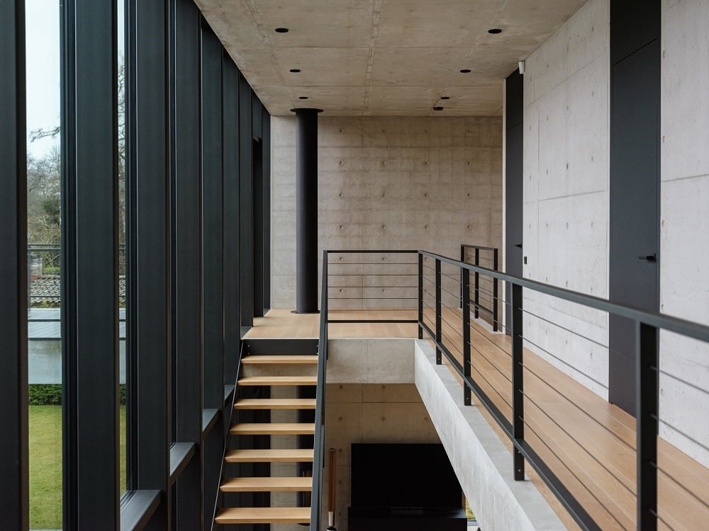Kogu teine korrus, umbes 90 ruutmeetrit ehk kolm magamistuba ja vannituba, on kinnitatud lõpuks katuslae külge. See toetub ühelt küljelt omakorda vaid teraspostidele – selline õhulisena mõjuv konstruktsioon. Maja valati nii, et vahelae plaadile jäid toed alla niikauaks, kuni katuslagi oli ära valatud. Raketised ja toed eemaldati, kui kogu konstruktsioon oli ära valatud ja tugev. Suure osa ehituse ajast oli terve esimene korrus tugiposte täis. Alles siis, kui need sai ära võtta, nägime reaalselt avarust, mille olime sinna majja projekteerinud. Väga hea tunne oli, kui maja ilmet hakkas võtma.